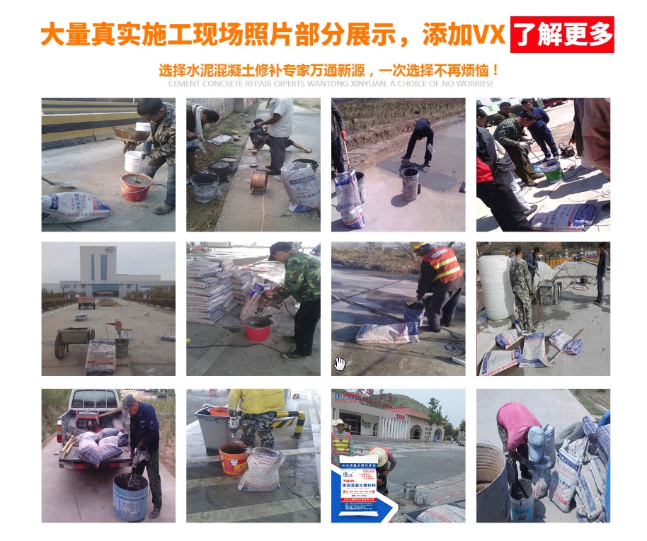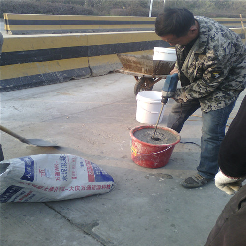 大慶萬通新源科技有限公司獨有的混凝土路面高強速補料,是水泥混凝土路面病害修復(fù)的好材料。疲勞、凍融循環(huán)、彎曲壓力、滲水和基層破壞等原因都會引起水泥路面的破損,從而帶來高昂的維護費用。與以往的剛性修補方法不同,混凝土水泥路面維修速補膠提供了一種獨特的柔性修補產(chǎn)品和技術(shù),高柔性、高抗拉性,可跨伸縮縫施工和高抗壓性使得混凝土快補產(chǎn)品為水泥混凝土路面提供了******性的修補。傳統(tǒng)的剛性修補方案,如環(huán)氧砂漿和快干水泥產(chǎn)品,由于其自身的粘結(jié)失效,抗疲勞性低以及與原路面不同的伸縮系數(shù),修補面會在短時間內(nèi)失效或產(chǎn)生新的裂縫,需要反復(fù)修補,有效期短且費用高昂。大慶萬通新源科技有限公司的混凝土水泥路面維修速補膠可以隨原路面一起伸縮,移動,從而避免了粘結(jié)失效和產(chǎn)生新裂縫。萬通快補產(chǎn)品優(yōu)異的粘結(jié)性、柔韌性和高防滑性,特別適用于水泥路面的淺層粘合修補,多邊角混凝土板層修補,跨伸縮縫修補以及路面沉陷修補。萬通混凝土病害修補料針對混凝土起皮起沙、斷板裂縫、蜂窩麻面、坑槽露石子、漏筋掉皮、橋梁的掉皮漏筋快速通車使用時間長。應(yīng)用萬通快補產(chǎn)品,施工后一天就可以恢復(fù)交通。大慶萬通新源科技有限公司的萬通水泥路面維修速補膠適用于高速公路、機場路面、農(nóng)村村村通路面、廠坪、學(xué)校操場、市區(qū)公路、小區(qū)路面、橋梁、水泥路面的修補。使用萬通特快補材料修補路面可以一勞永逸! 水泥地面起砂怎么辦,混凝土修補劑混凝土地面起砂,混凝土地面修補,地面起砂怎么辦,